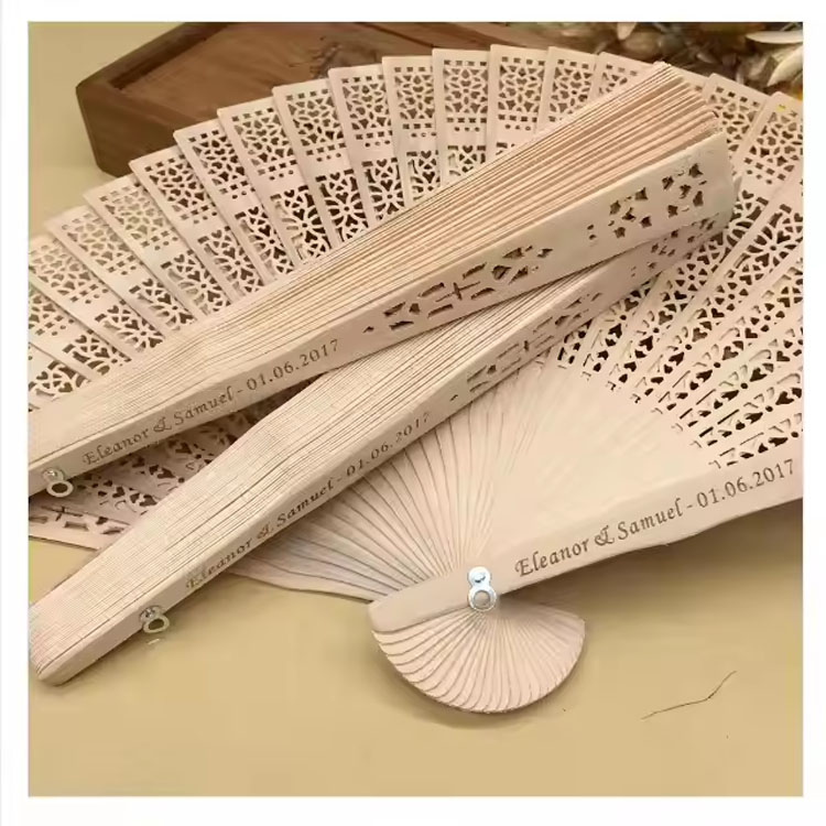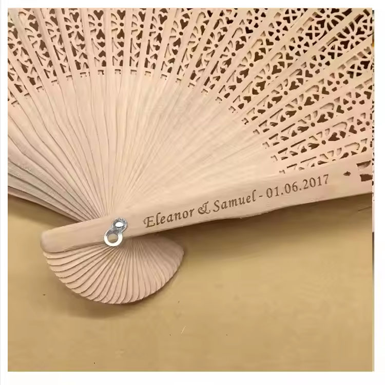 Disse fans tjener som elegante festgaver, bryllupsmindesmærker eller mærkevarer til reklamegenstande. Uanset om de placeres ved borddækning eller udleveres som souvenirs, tilføjer de et strejf af charme, mens de promoverer dit budskab på en mindeværdig måde.