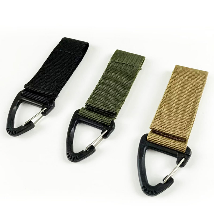 Band Karabinhage Nøglering Bælte Strap Hanger Nøglering. Din ultimative taktiske organisationsløsning. Dette Nylon Webbing-spænde kombinerer en sikker gearklemme med alsidig karabinhagefunktionalitet. Perfekt til rygsække, nøgleringe og bæltestropper, det sikrer hurtig adgang og pålidelig ydeevne til hverdagsbrug.