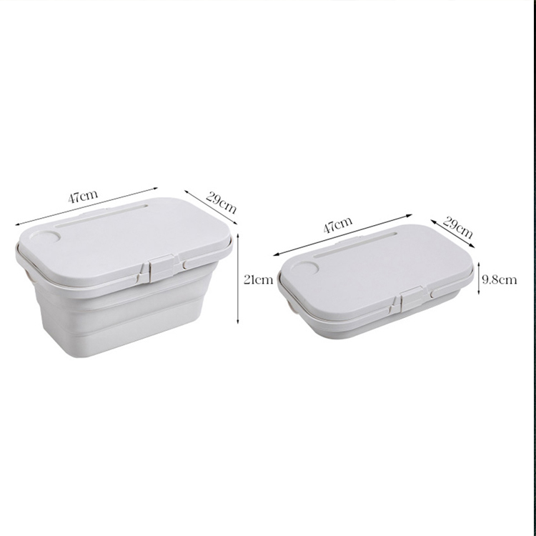 Kurv Udendørs Camping Vandring Picnic Opbevaringscontainer. Din ultimative bærbare organisationsløsning til udendørs eventyr. Denne multifunktionelle foldbare kurv kombinerer en opbevaringsbeholder med en indbygget bordflade. Den er lavet af slidstærkt plastik og er perfekt til camping, vandreture og picnicudflugter.