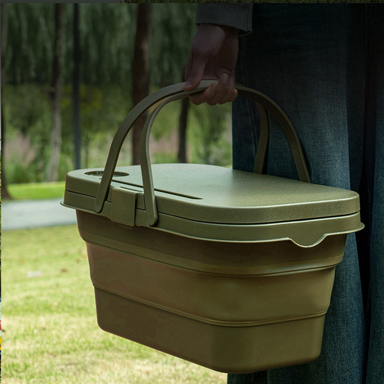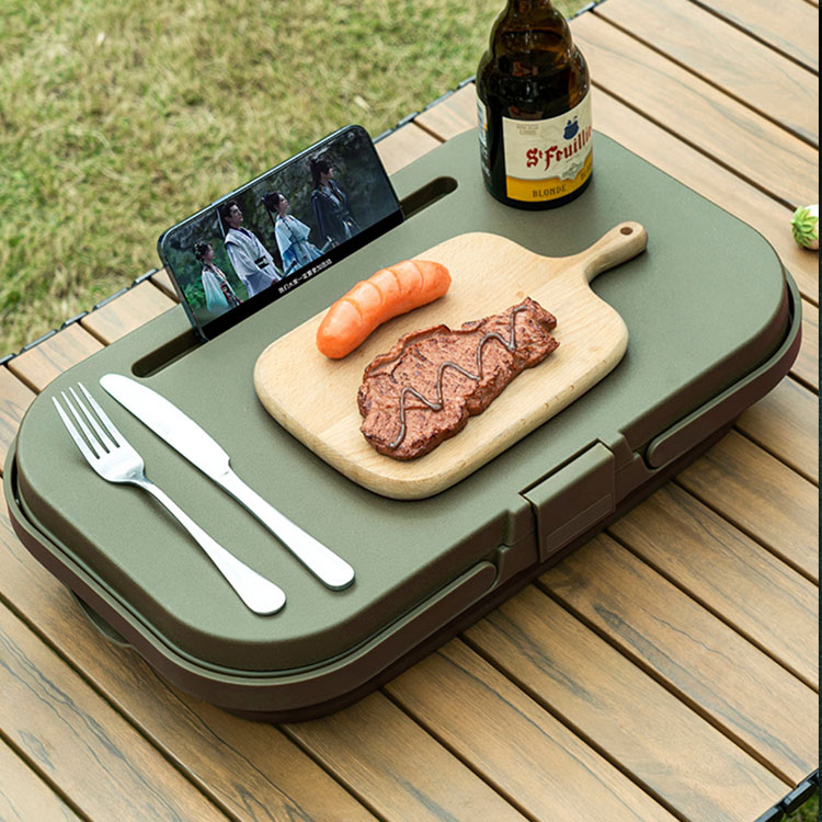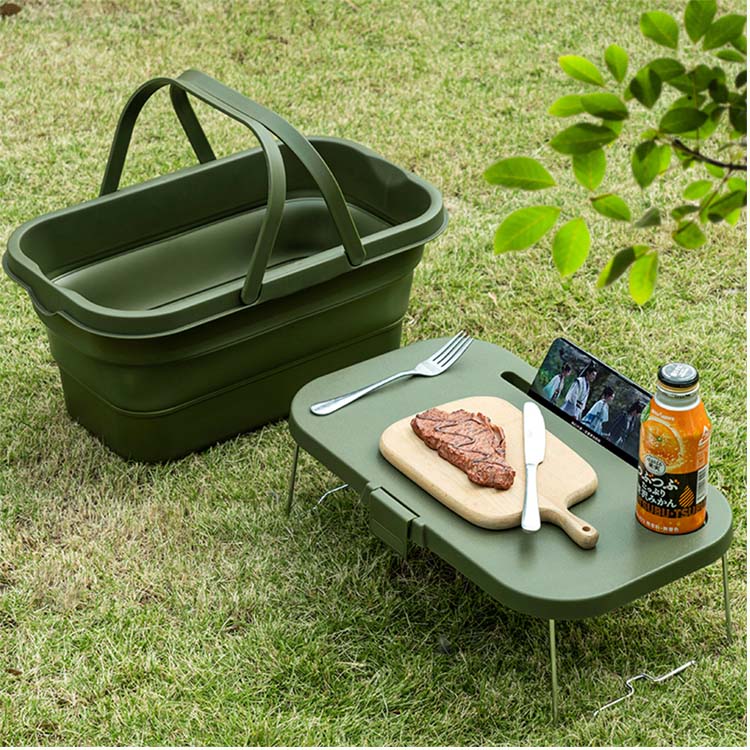 Denne innovative kurv forvandles fra en dyb opbevaringsbeholder til en flad, stabil bordflade på få sekunder, hvilket giver både organiseret opbevaring og en praktisk serverings-/spiseplatform til udendørsaktiviteter.