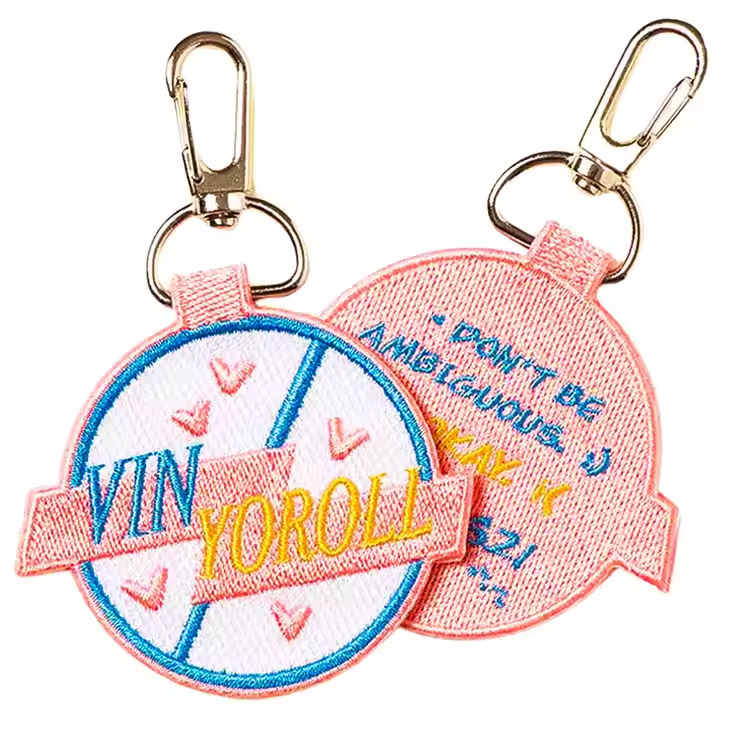 Brugerdefineret logobroderi nøglering broderet nøglering. Brugerdefineret broderet nøglering — personliggjort med dit logo eller tekst i højkvalitetssømme. Holdbar, stilfuld og ideel til salgsfremmende gaver, begivenheder eller branding. Et let og praktisk tilbehør med en premium vævet finish.