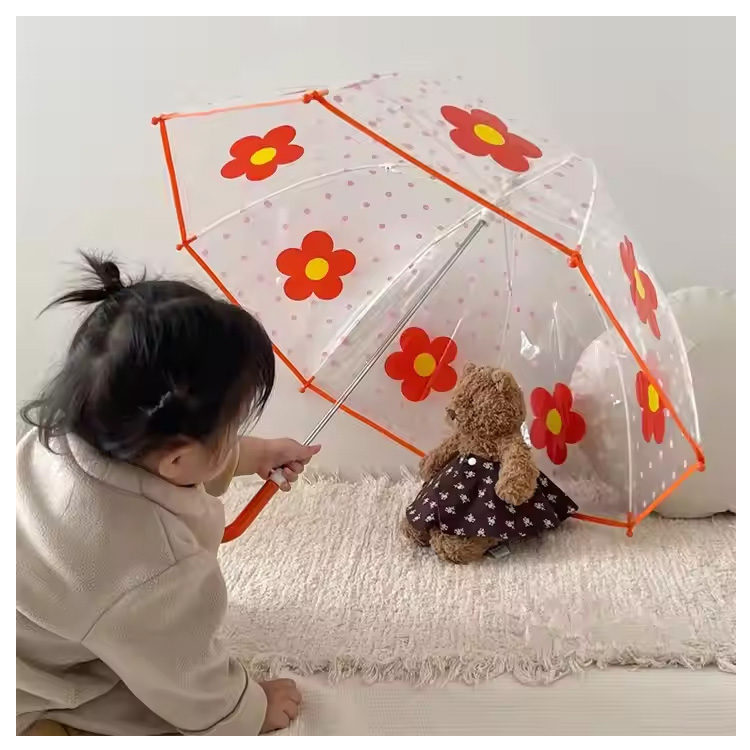 Brugerdefineret logo til børn lige paraply reflekterende regnfrakke