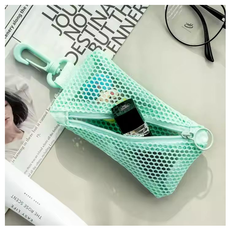 Fraagonal lille lynlås møntpung mesh læbestift taske. Kustom mesh mini lynlås pose nøglering lille opbevaringspose til mønter, læbestift eller øretelefoner. Let og åndbart design med krog til let at hænge på rygsække, håndtasker eller skoletasker. Perfekt personlig tilbehør til daglig brug eller rejser.