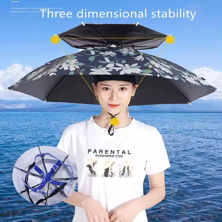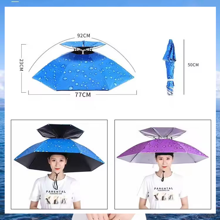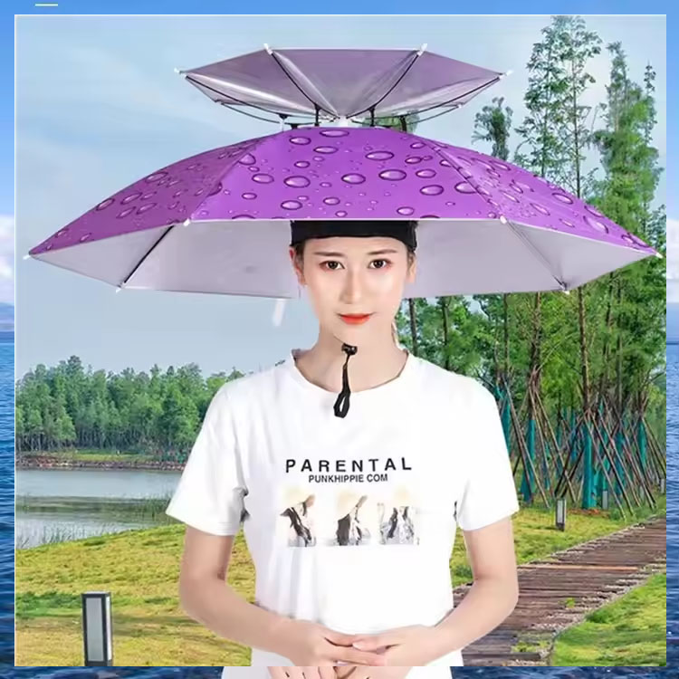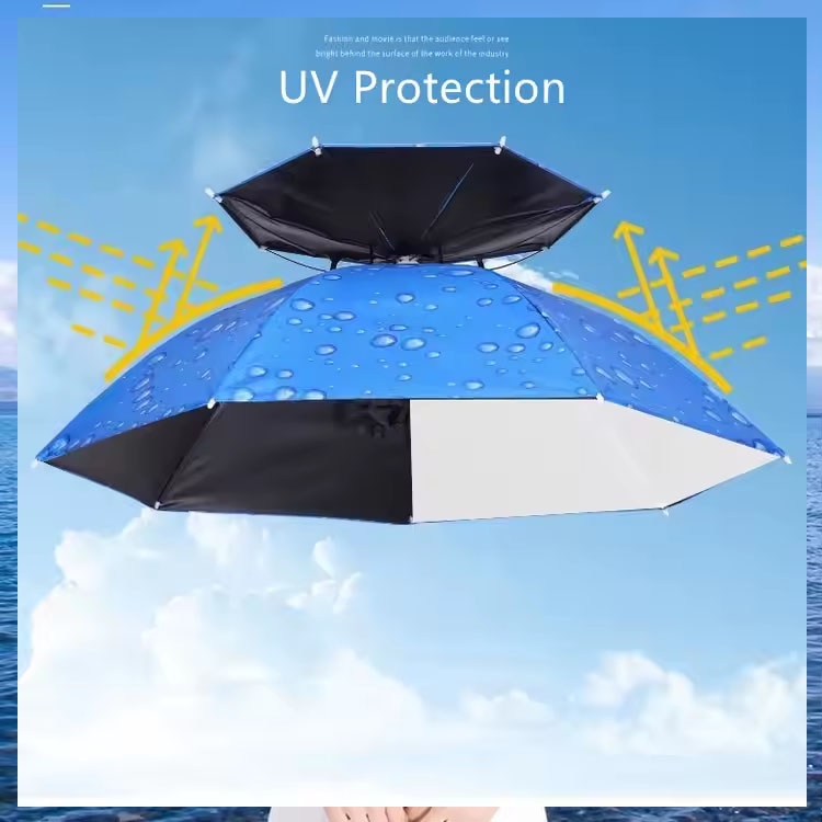 Denne paraplyhue frigør dine hænder, mens du giver fuld beskyttelse mod sol eller regn. Perfekt til fiskeri, havearbejde, vandreture, cykling eller arbejde udendørs uden at skulle have en traditionel paraply.