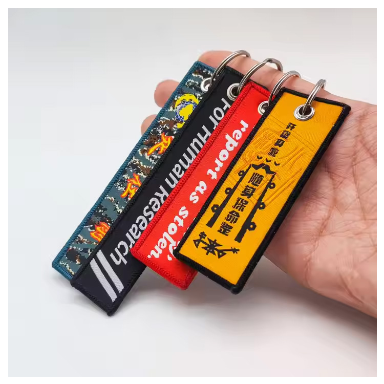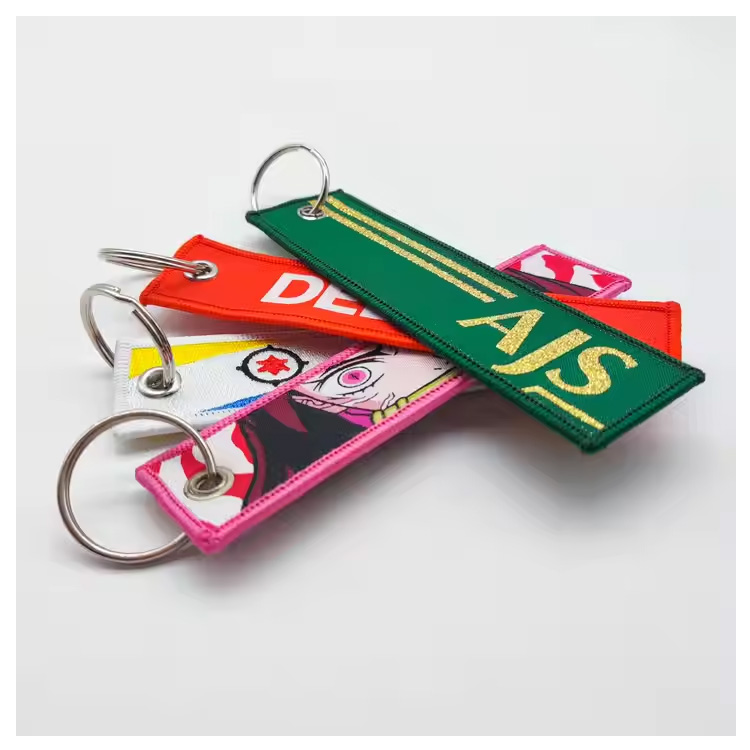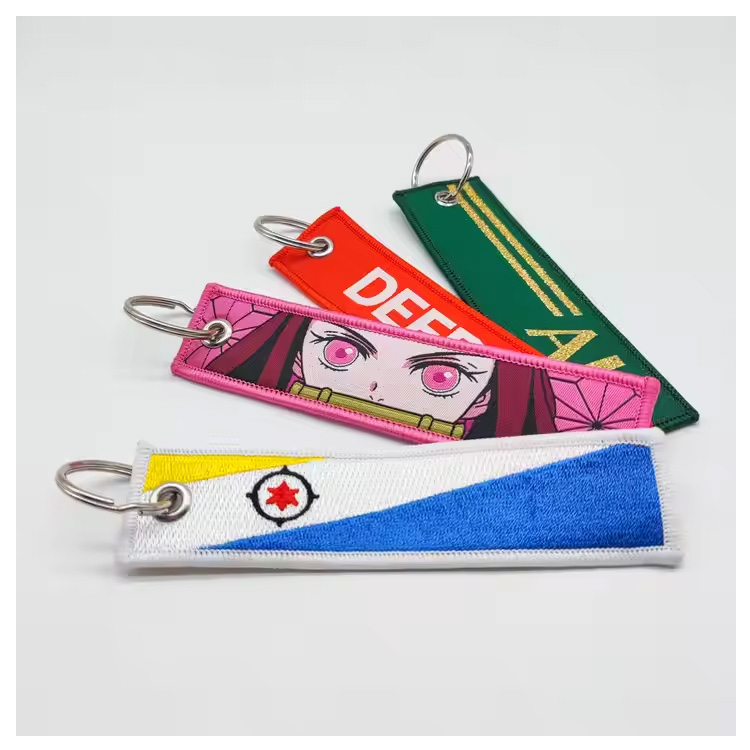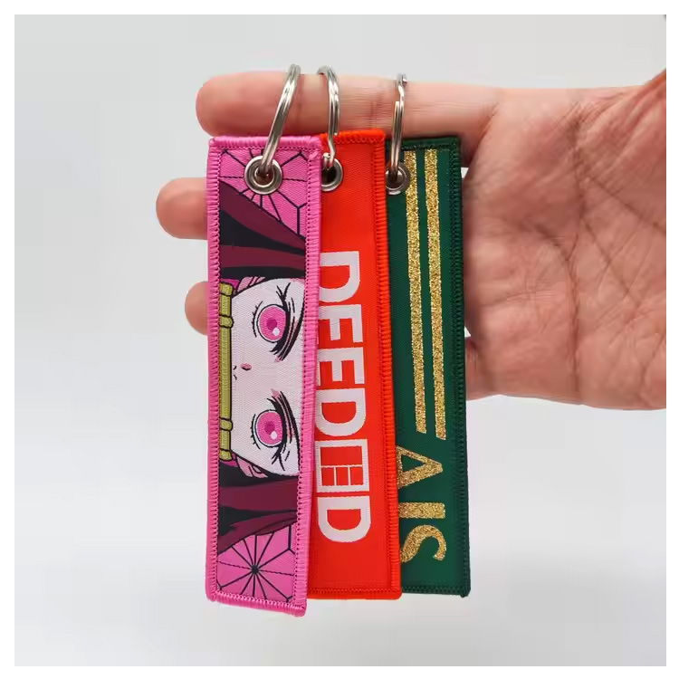 Nøglekæde Sublimering Fabric Anime Embroidery Key Tags.Durable Custom Broderet nøglemærke med personlig logo, vævet jet -tag nøglering til poser, biler eller rygsække. Letvægtsstofmateriale med sublimeringsprint, ideel til salgsfremmende gaver, anime -fans eller hverdagsbrug med et stilfuldt touch.