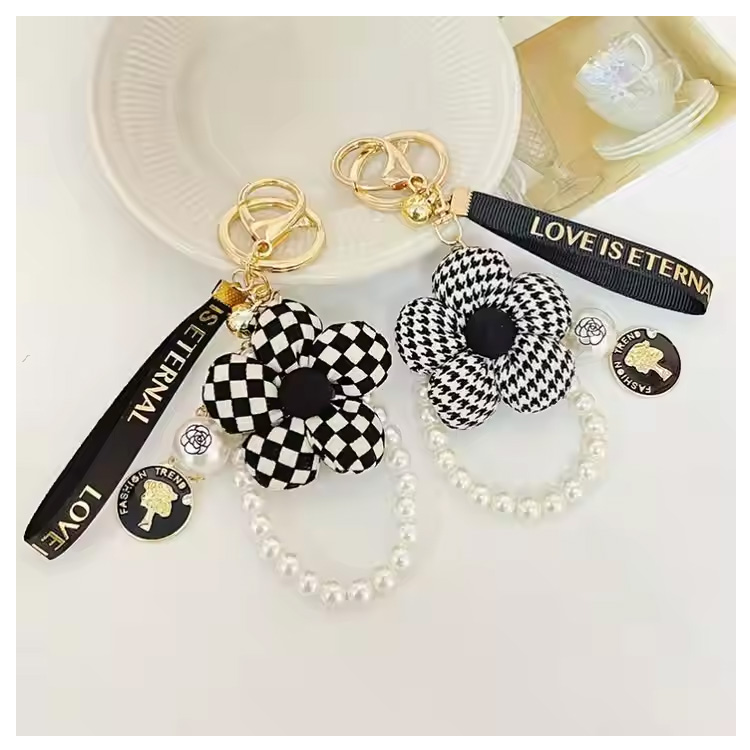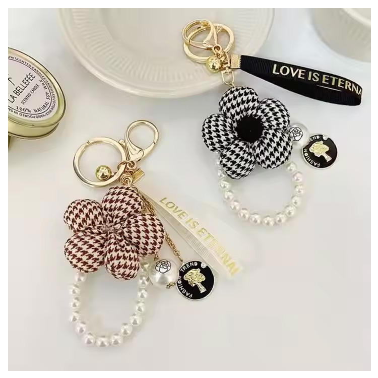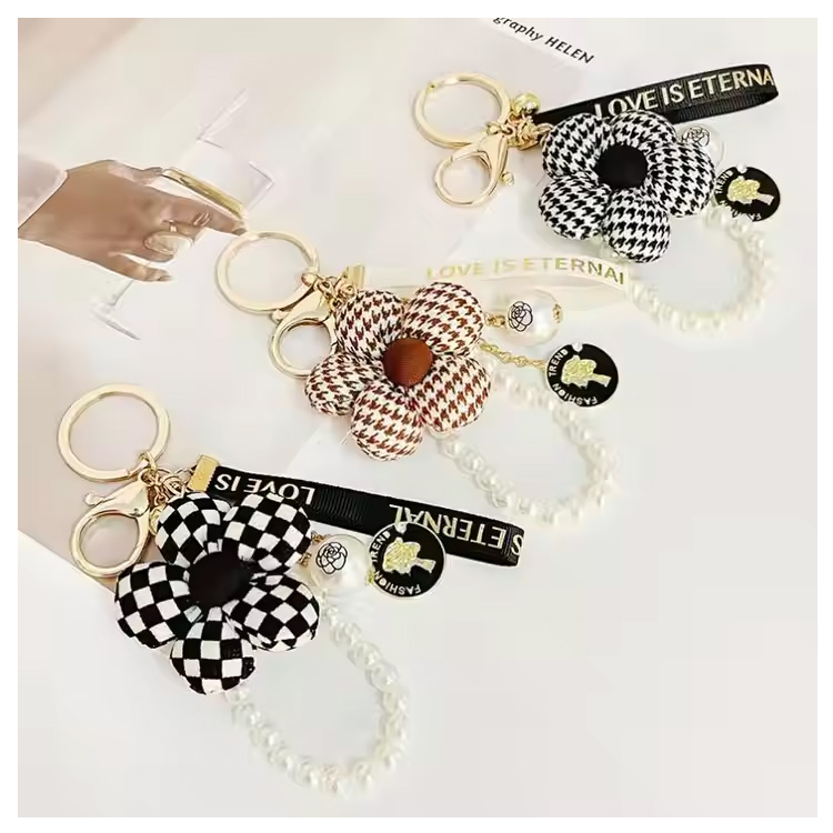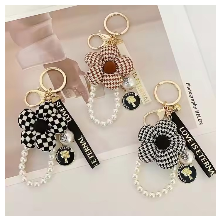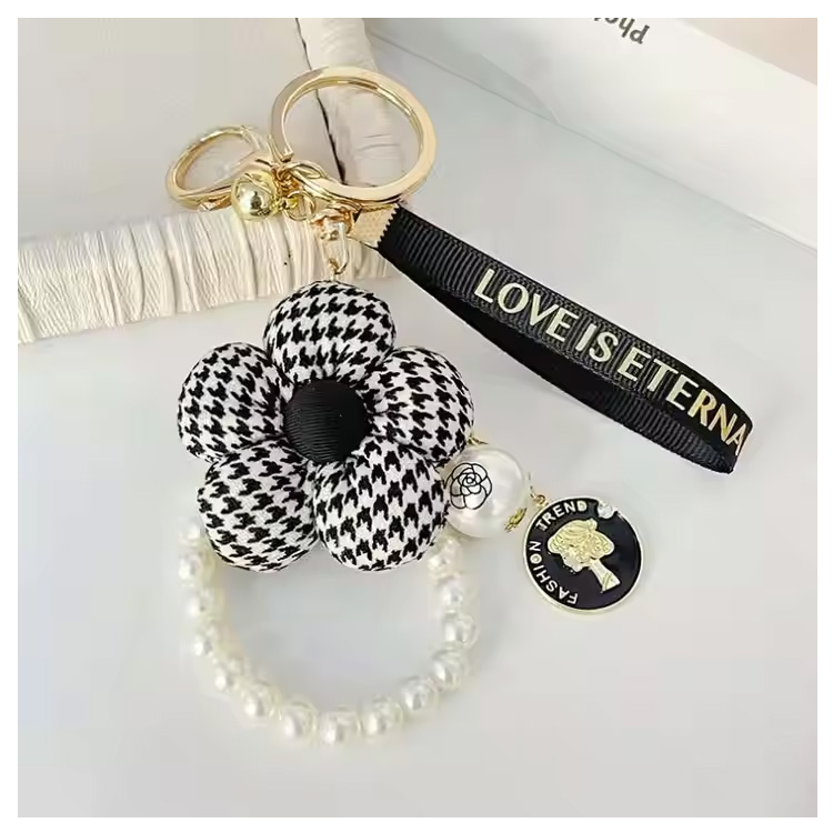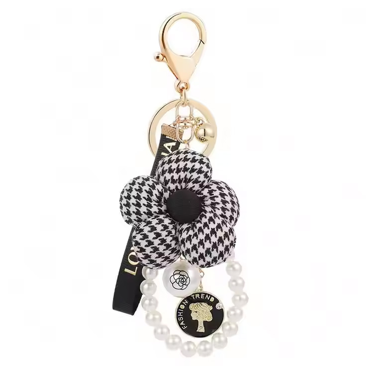 Denne nøglering har et delikat blomstermotiv parret med bløde kvaster, udstrålende charme og sofistikering. Det er designet til at supplere moderne kvinders mode og tilføjer en yndefuld flair til håndtasker, rygsække eller bilnøgler.