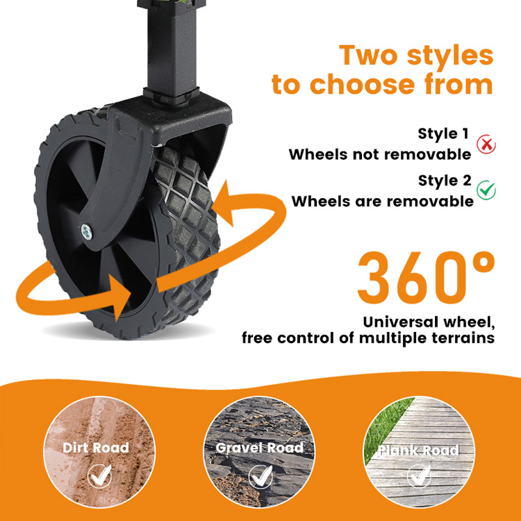 Udstyret med 8-tommer pneumatiske dæk med dybe slidbanemønstre, der jævnt navigerer i sand, grus, græs og ujævne stier, mens de sikrer stabil bevægelse og nem manøvredygtighed.