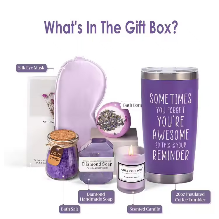 Lunaire brugerdefinerede gavesæt Mors dag gaver Bryllupsgaver. Elegant specialfremstillet gavesæt med tumbler, stearinlys, sæbe og tørrede blomster— Perfekt til mor’s dag, brudepigegaver, bryllupsgaver eller kirkesouvenirs. Gratis kombinationsmuligheder med personligt logo gør det til et tankevækkende og mindeværdigt minde.