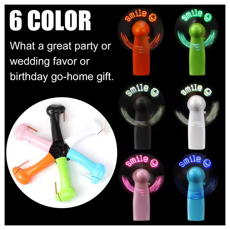 Ny mini bærbar Handy LED Custom Message Battery Fan. Mini bærbar LED Message Fan — Kompakt, batteridrevet og kan tilpasses med rulletekst. Leverer en kølig brise, mens du viser dit brand eller din besked i skarpe LED-lys. Perfekt til begivenheder, fester eller salgsfremmende gaver.