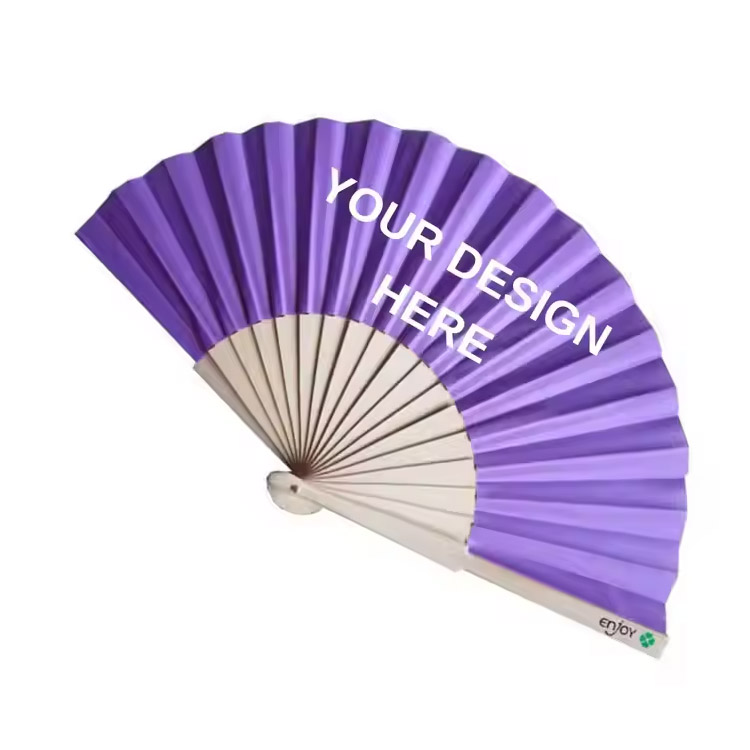 Personaliseret trykt bambus træfoldningshåndsventilator. Personaliseret bambusfoldningshåndventilator med brugerdefineret logo, ideel til festivaler, fester og begivenheder. Holdbare træribber med kvalitetsstof til glat klacking lyd. Letvægt og stilfuldt tilbehør til kvinder og mænd, perfekt til sommer- og ravebrug.