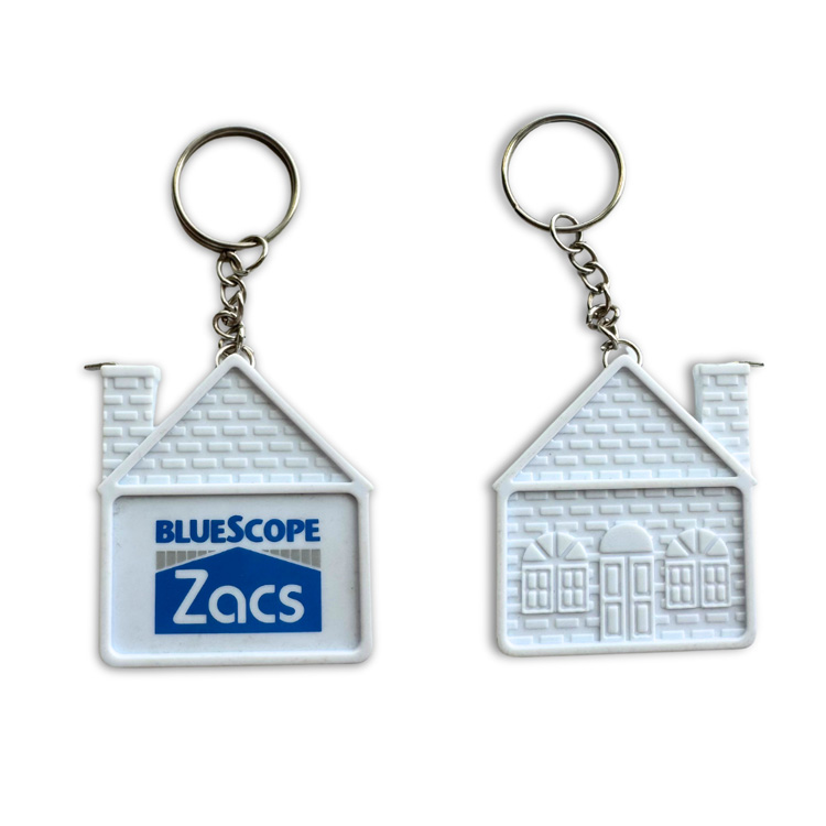 Med en unik hussilhuet fanger denne nøglering øjeblikkeligt opmærksomhed, mens den formidler et varmt "hjem"-koncept - perfekt til ejendoms-, bygge- og boligindretningsindustrien som en salgsfremmende gave.