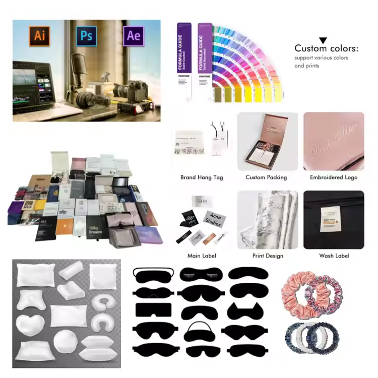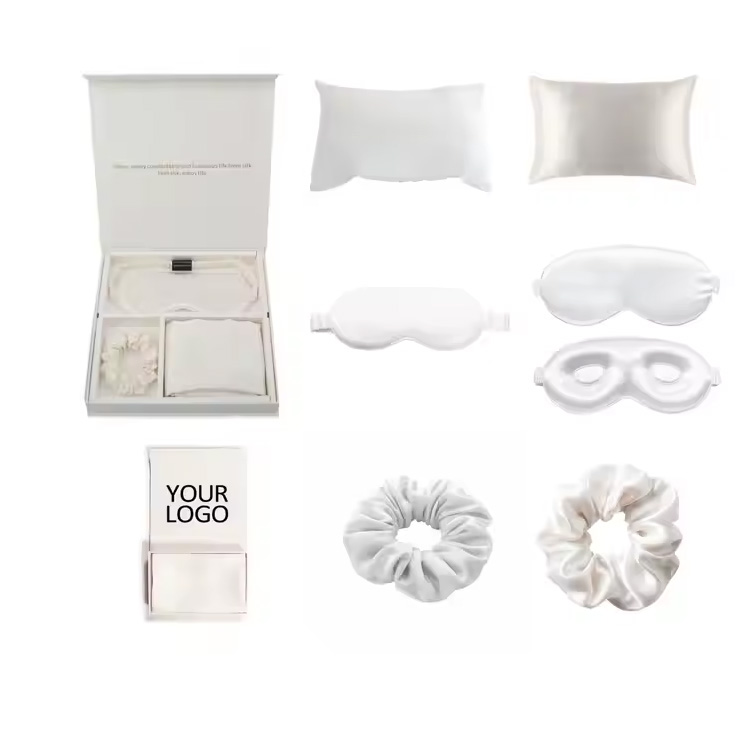 Silk Gift Set Custom Logo inkluderer Hair Scrunchies Pillowcase