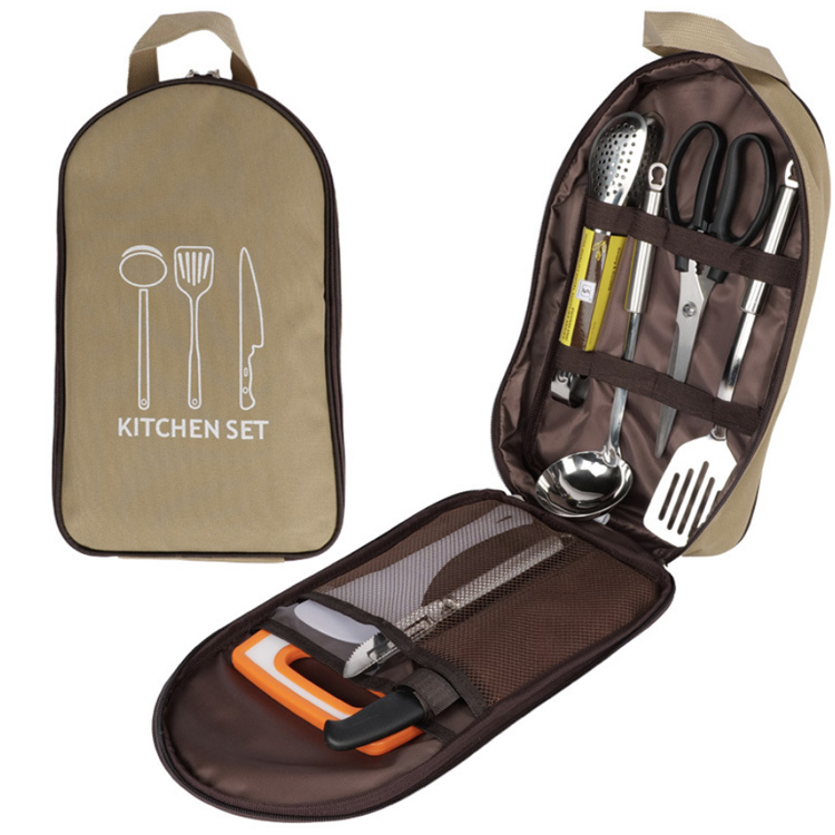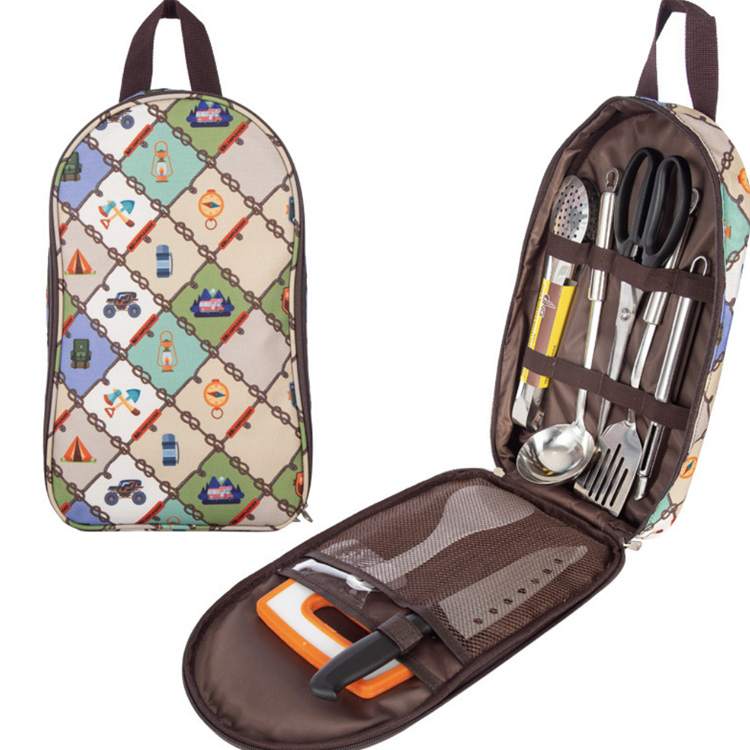 Flere indvendige lommer og elastiske løkker holder alle værktøjer sikkert på plads, inklusive køkkenredskaber, bestik og småt tilbehør, hvilket sikrer, at intet går tabt under transporten.