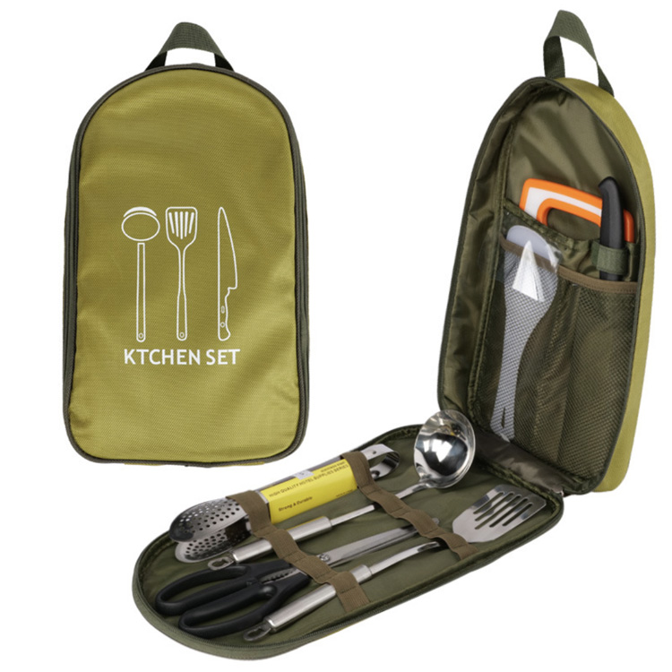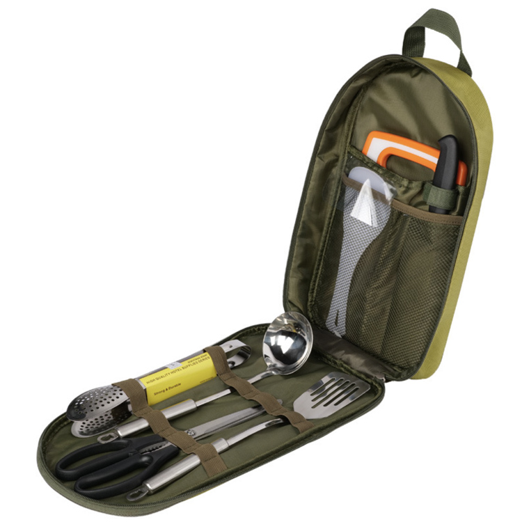 SOLO WILD Komplet Camping Udendørskøkken Sæt Portable.Din ultimative alt-i-én udendørs køkkenløsning. SOLO WILD komplette campingsæt indeholder holdbart rustfrit stålværktøj i en vandtæt opbevaringstaske. Dette bærbare system giver organiseret, klar-til-brug campingtilbehør til ethvert eventyr.