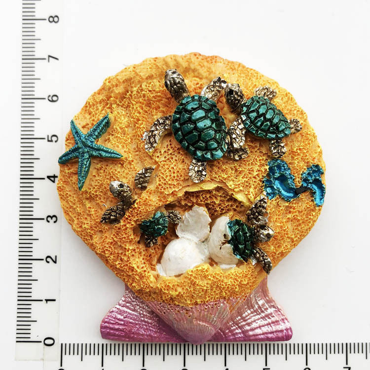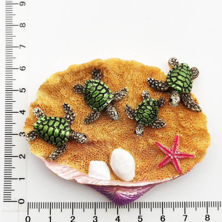 Med en yndig søstjerneform udsmykket med tre indviklet detaljerede skildpadder, fanger denne køleskabsmagnet havets skønhed i et charmerende, miniature kunstværk. Hvert element er omhyggeligt skulptureret for at bringe et realistisk og dekorativt præg til dit hjem.